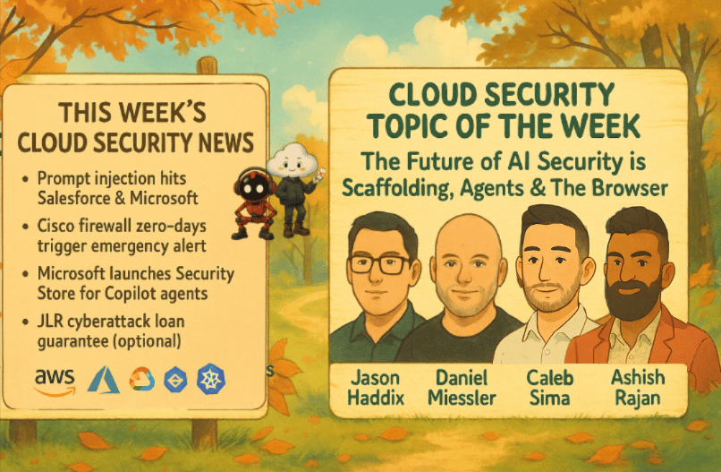 This week's newsletter examines how prompt injection has evolved from academic research to active exploitation in enterprise platforms like Salesforce Agentforce and Microsoft 365 Copilot, the reality of AI-powered offensive security capabilities demonstrated in competitions like DARPA's AIxCC, and what cloud security leaders must understand about defending increasingly complex AI-integrated systems. Meanwhile, CISA's emergency directive on Cisco firewall zero-days and strategic acquisitions in the AI security space signal the urgency of modernizing both traditional and AI-era defenses.