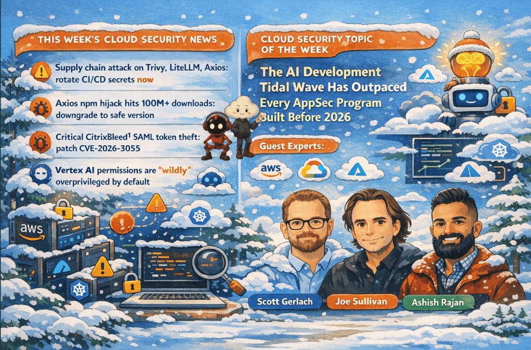 This edition covers the most consequential software supply chain attack since XZ Utils the TeamPCP campaign that compromised Trivy, LiteLLM, Telnyx, and the Axios npm package across five developer ecosystems while Cloudflare's former CSO Joe Sullivan and StackHawk co-founder Scott Gerlach share hard-won lessons on why Application Security, runtime testing, and AI-augmented development teams are reshaping the CISO's mandate in 2026. Keywords: supply chain attack, AppSec, DAST, CI/CD security, Vertex AI permissions, CISO operating model, AI-accelerated development, runtime security.
